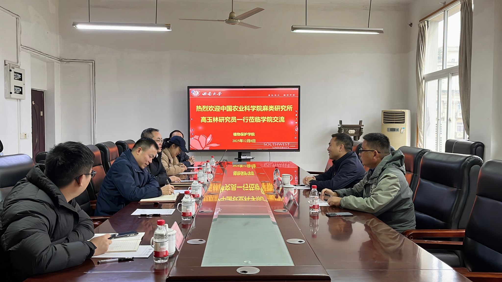 高玉林研究员介绍了中国农业科学院麻类研究所在特色作物病虫害防控、农业绿色发展技术研发等领域的优势学科方向、科研成果及产业化应用情况。随后,双方围绕西南地区农业生产中面临的实际植保难题、关键技术研发需求、人才联合培养模式及科研资源共享等议题展开深入研讨,在共建科研合作平台、联合申报科研项目、学生实习就业与深造推荐等方面达成系列合作共识。