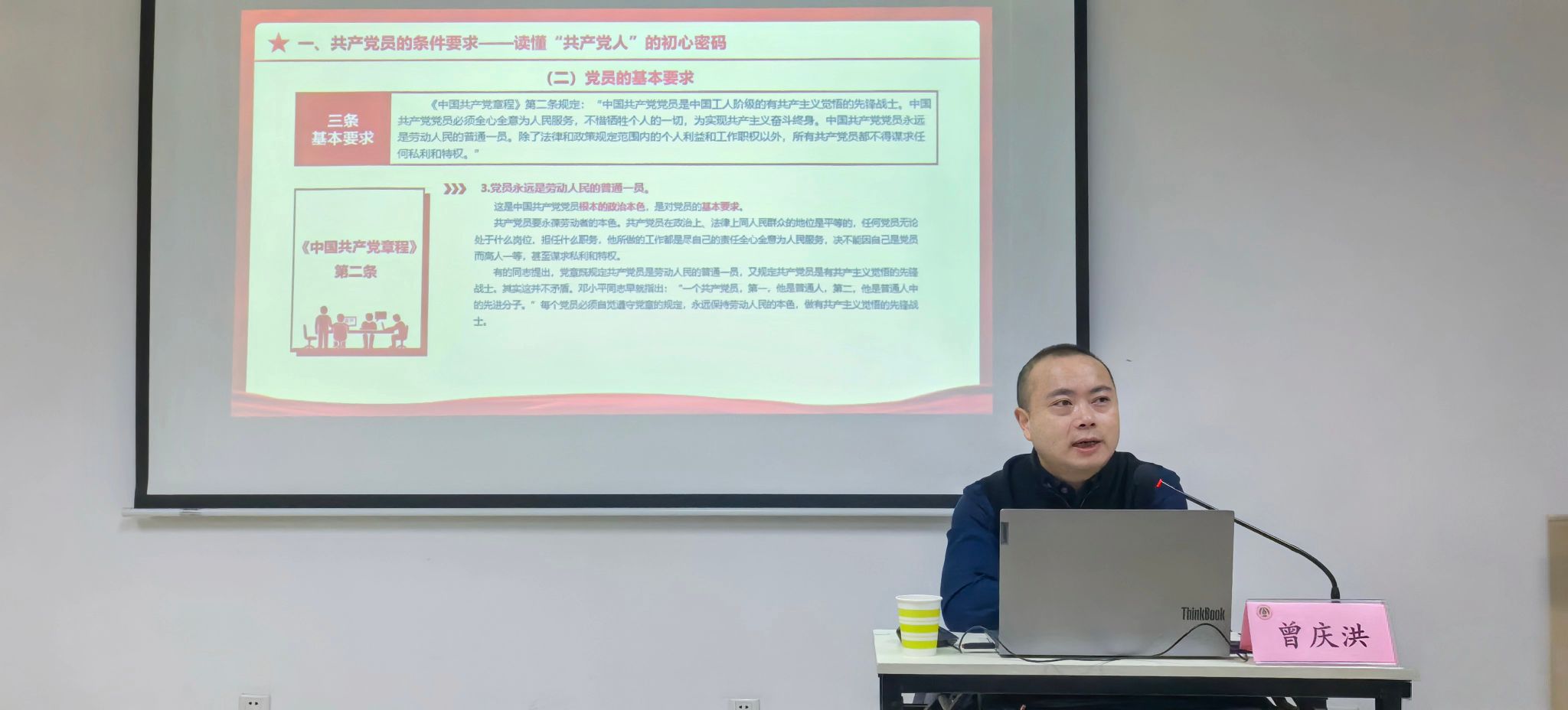12月14日,学校党委常委、组织部部长曾庆洪应邀为学院入党积极分子讲授《矢志成长为新时代青年学生党员——中国共产党党员的条件及入党程序》。活动由学院党委书记刘立广主持,学院2025年秋季学期入党积极分子培训班全体学员参加学习。